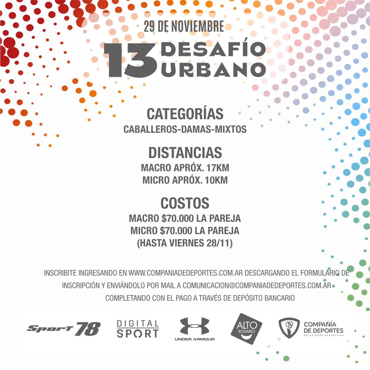 El Desafío Urbano, es una prueba pedestre a desarrollarse en la ciudad de Rosario en equipos de 2 integrantes.
